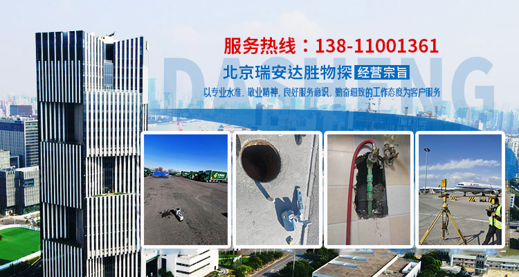 北京瑞安達勝物探技術有限公司成立于2012年,是一家管線探測、漏水檢測、地面空洞(塌陷、病害)檢測等業(yè)務的企業(yè)。公司自成立以來一直為各市政單位、開發(fā)商、設計單位、物業(yè)小區(qū)、學校、工廠等企事業(yè)單位提供:地下管線定位探測、漏水檢測、地質(zhì)勘測、資源勘探等業(yè)務。